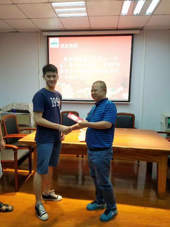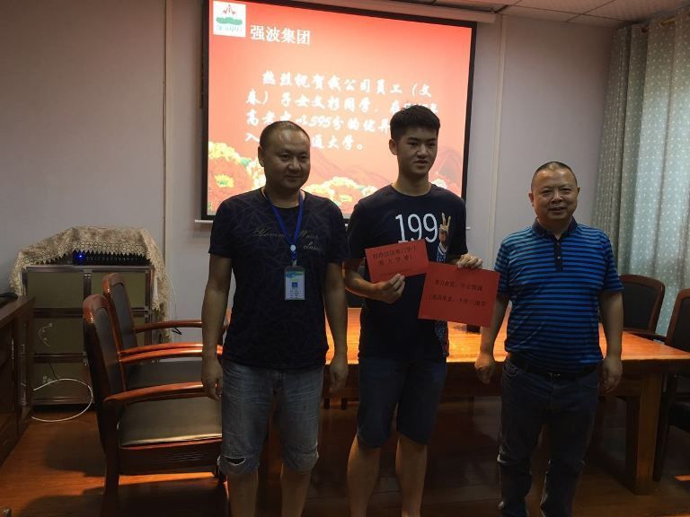 2017年7月25日下午,在強波公司會議室舉行了員工子女高考獎勵基金頒發儀式。十年樹木,百年樹人,為鼓勵員工重視子女教育,公司董事長孫波專門設立員工子女高考獎勵基金。今年,員工文春的子女文杉享受到了高考獎勵基金。