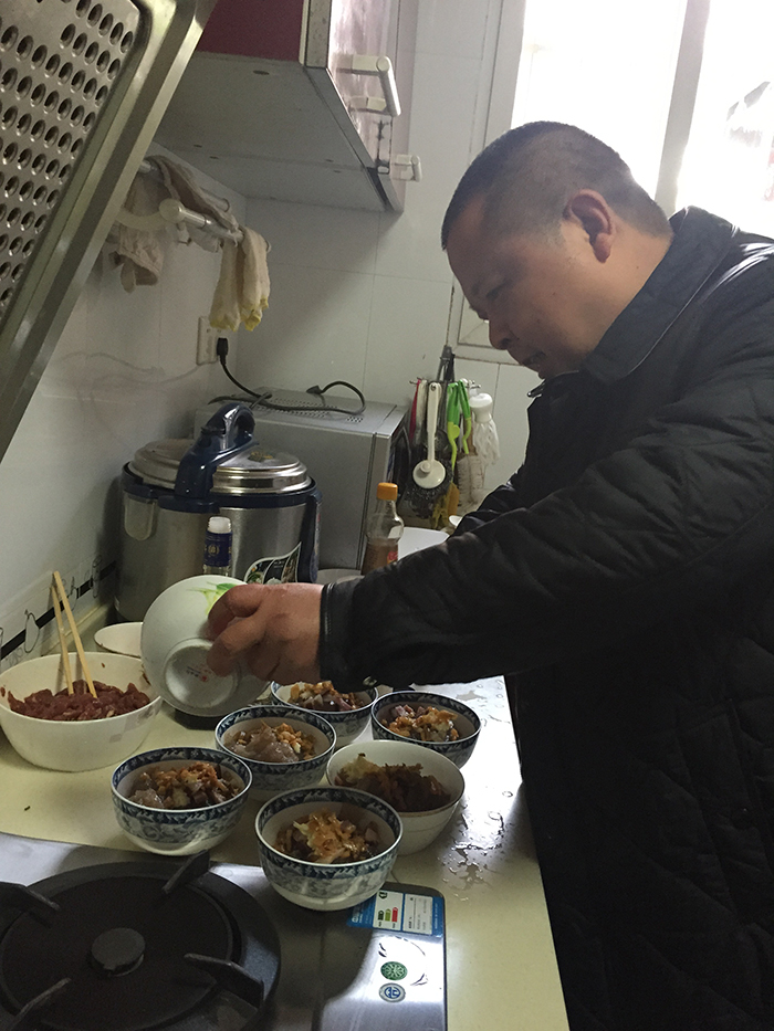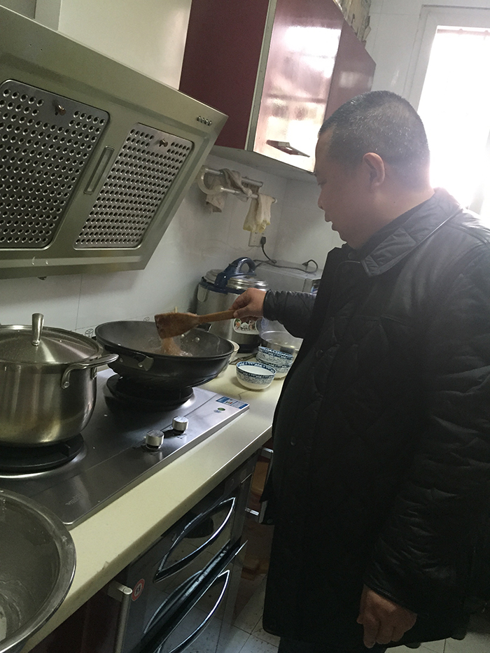 (圖一)老大在廚房觀察涼粉的顏色和稠度