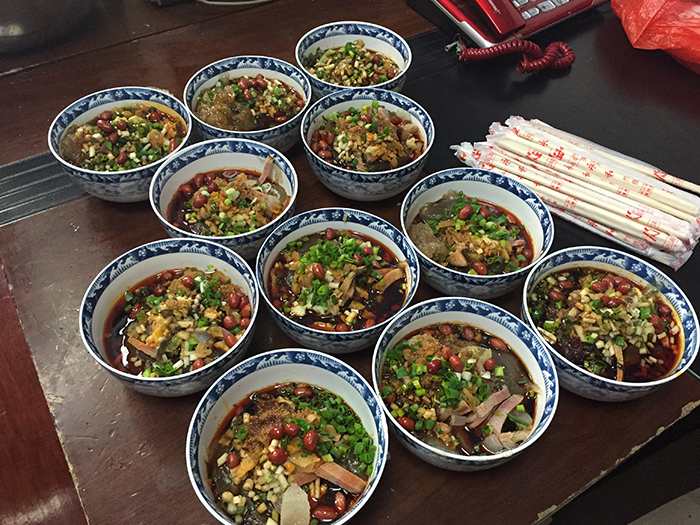 熱涼粉是四川省南充地區(qū)的一道地方特色小吃(當(dāng)?shù)赜址Q苕涼粉),與普通涼粉不同,熱涼粉顧名思義就是熱的涼粉,在涼粉變冷凝固之前,就撒上佐料,趁熱吃,口感滑糯,回味無窮。春節(jié)收假的第三天,老大親自下廚給我們做了一頓正宗的強波熱涼粉,色香味俱全。