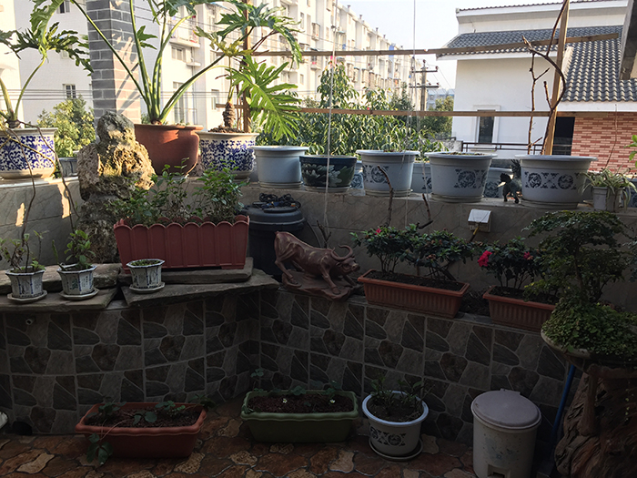 多肉植物顧名思義,是因?yàn)橹参锒嗨嘀沤卸嗳庵参铮嗨嘀驼f明植物本身有很多的水分,了解了這一點(diǎn)還是比較重要的,它們和草本植物是不一樣的,生長期草本植物基本是1到2天就要給水了,而多肉植物本身就有很多水分儲存著的。 對此在這里給大家普及一下養(yǎng)多肉植物的好處: 1、最適合懶人養(yǎng)的植物。 由于多肉植物生長在干旱地區(qū),所以本身對水的需求不大,一般室內(nèi)養(yǎng)殖的話,7-10天澆水一次就可以了,夏天是休眠期,可以半個(gè)月澆水一次,所以說不管你是經(jīng)常不在家還是懶人一枚,多肉植物都不需要你的精心呵護(hù)一樣可以健康成長。 2、防輻射。 有些多肉植物就有防輻射的作用,對于我們大部分上班族來說這是一個(gè)好事,我們可以養(yǎng)一些多肉植物放在電腦桌前防輻射。 3、多肉的形態(tài)多種多樣變化很多,可以滿足各種審美需要。 4、迷你小巧的家居百搭擺設(shè)。 5、凈化空氣、釋放氧氣。 多肉植物與其他植物的呼吸作用相反,普通植物是白天光合作用釋放氧氣,夜間釋放二氧化碳。而多肉植物是白天閉合呼吸,夜間吸收二氧化碳釋放氧氣。由于它們生長在干旱炎熱的地區(qū),白天為避免水分喪失,關(guān)閉氣孔,夜間氣孔開放吸收CO2進(jìn)而形成蘋果酸存于大液泡內(nèi),白天放出CO2進(jìn)行光合作用。此外多肉植物的根、莖、葉都有很強(qiáng)的的功能。 (圖一)、老大的愛好之一——收集各種奇花異草 老大親自給員工介紹花的品種,并且告訴我們?nèi)绾螖[放花的位置。 (圖二)、春天來了,老大從成都花卉市場新購進(jìn)一批多肉植物,這些五顏六色的肉肉,總是能讓人心情大好。 (圖三)樓頂外的各種植物,乘著春天的來臨,給其松松土,重新整理了下樓頂花園 |