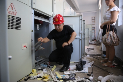 圖四:八月的南充驕陽似火,但為了保證9月1日能順利通電,點亮校園,為西南石油學院的全體教職工以及莘莘學子送去光明,我公司員工頂著烈日,不畏酷暑狠抓工程進度。