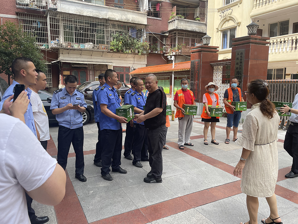 6月30日下午,在東南街道辦劉書記和工會何主席的帶領下,為街道辦事處、城管人員、環衛工人們送上了防暑降溫慰問品,為他們送去了夏日的清涼。